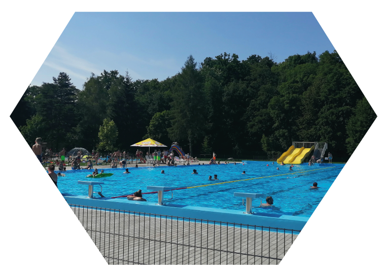 • Velký bazén 50 m s plaveckými dráhami